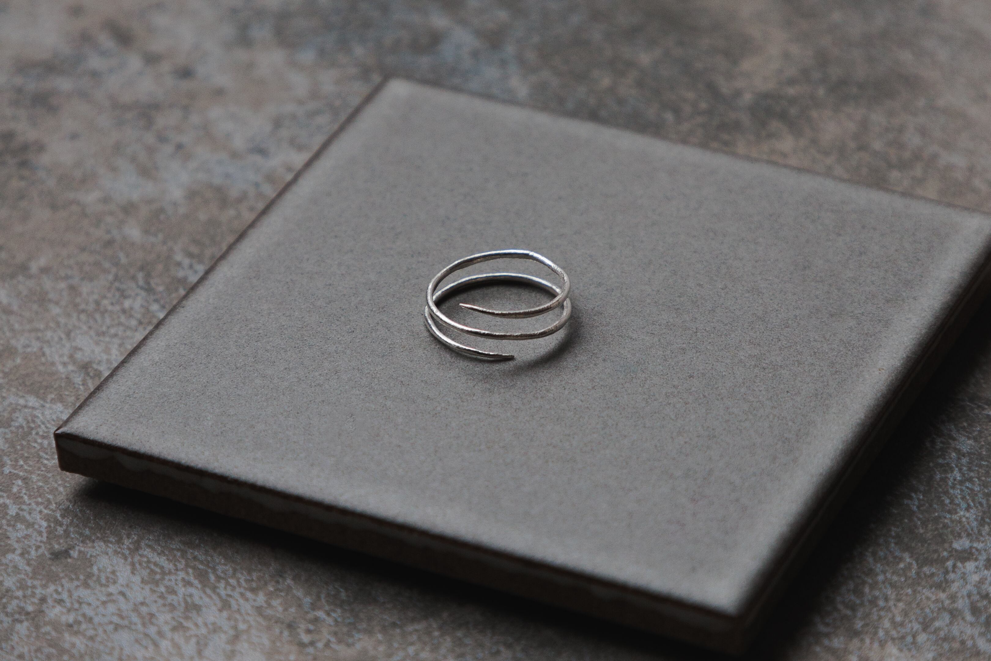 ≡ と=【コングルエントとイコール】 ①コングルエント 合同記号。 合同式の合同を表すための記号。 合同、恒等、定義、同値。 ② イコール 等しいこと。また、等しいことを表す記号。等号。 記号を取り入れた何かを作りたいなぁ、ちょっと錯覚っぽく見えるやつもいいよなぁと手を動かしていたら辿り着いたリング。 正面は3本線。裏面は2本線。 それはなんだか似てるようで似てない。 同じ意味のようで違う意味。 わずか数ミリの一本の線だけで結構意味が違う。 ややこしやぁ。 【素材】 アートクレイシルバー。 アートクレイシルバーとは、細かい純銀の粉末と水分、結合材を練り合わせた粘土のことです。 自由に形を作り乾燥させて削って整え、高温で焼くことによって水分と結合材が燃えてなくなり純度99.9%以上の純銀だけが残ります。 そんな素材を使って制作しております。 【サイズ】 芯の太さ→0.2cm 号数→在庫に記載(3サイズほど調整可能)