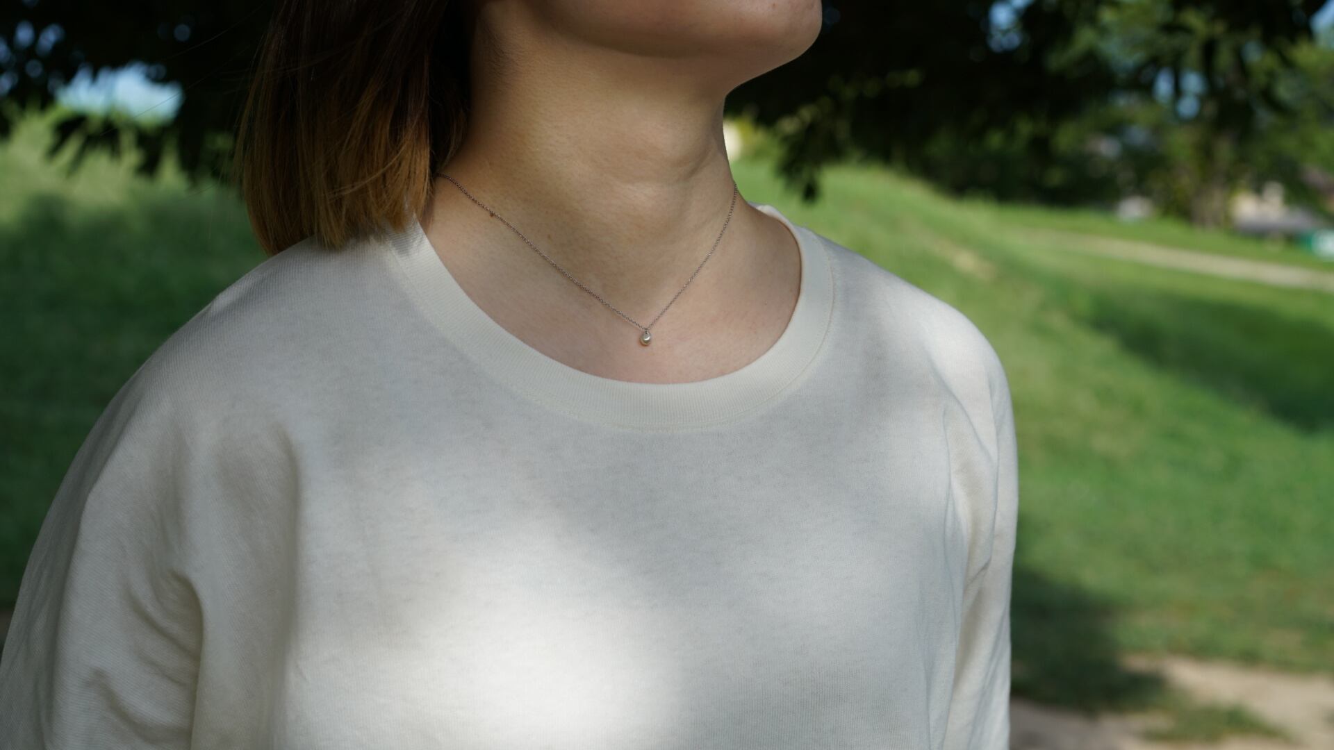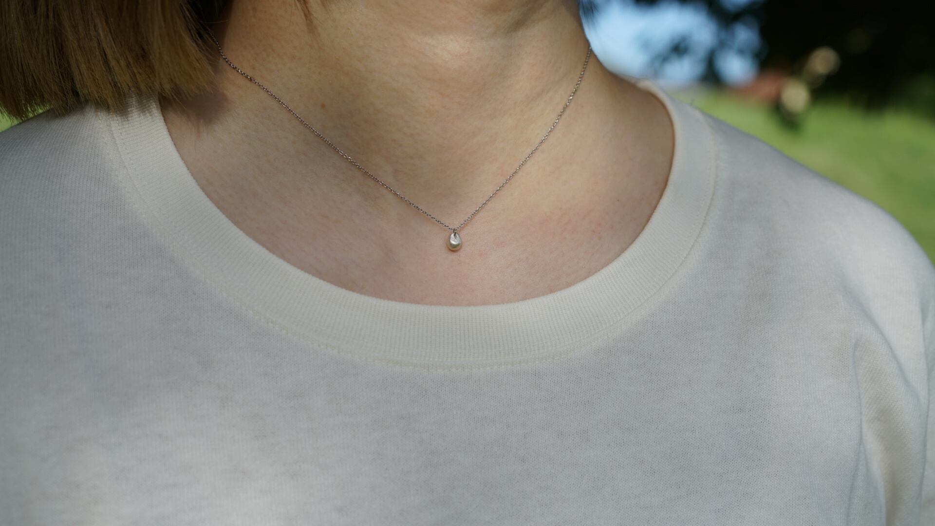 小指の先に"ちょん"と乗るくらいの小さなサイズのペンダントトップ。